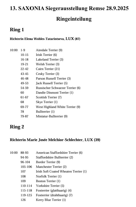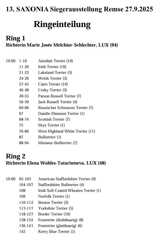Ringeinteilung für die Ausstellung am 27. und 28. September 2025